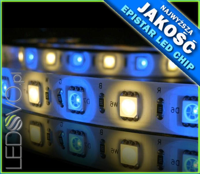 Dzięki innowacyjnej technologii NASZA TAŚMA LED RGB 5050 EPISTAR LEDOVO jest wyjątkowo jasna. W zależności od ustawienia jasności poszczególnych kolorów "bazowych" możemy uzyskać dowolną barwę światła, w tym barwę CIEPŁOBIAŁĄ. Stosując STEROWNIK RGBW możemy uzyskiwać płynną zmianę barwy światła i kontrolować wszystko z bezprzewodowego pilota.