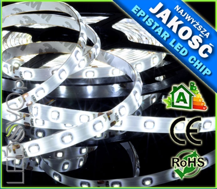 - Taśmę LED Epistar Ledovo 3528 na podwójnym podkładzie PCB w 10 odcinkach 80cm z wypuszczonym okablowaniem o długości 1m: