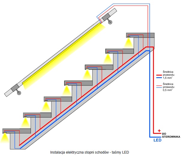 - Zestawy na dowolną długość i liczbę stopni nowoczesne oświetlenie LED na wymiar Twoich schodów