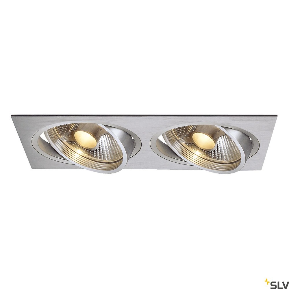 NEW TRIA 2, lampa wpuszczana, dwupunktowa, QPAR111, prostokątna, szczotkowane aluminium, maks. 150W, ze sprężynami zaciskowymi