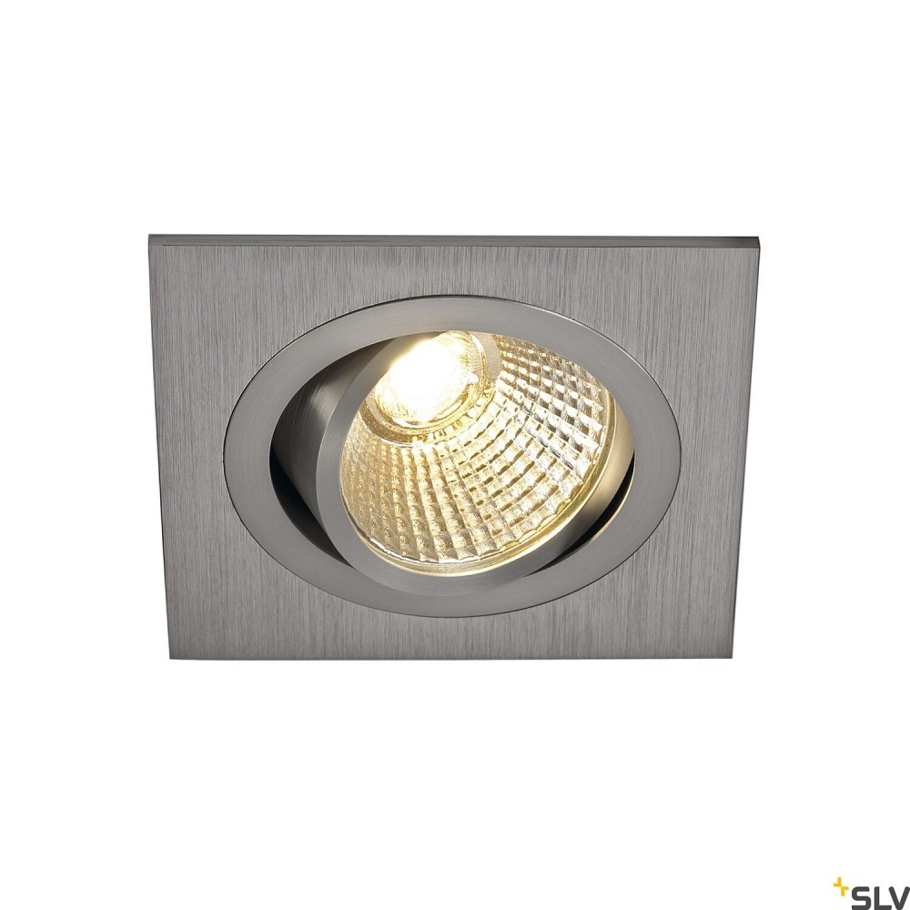 NEW TRIA 1 SET, lampa wpuszczana, jednopunktowa, LED, 3000K, kwadratowa, szczotkowane aluminium, 38°, 9,1W, z zasilaczem i sprężynami zaciskowymi