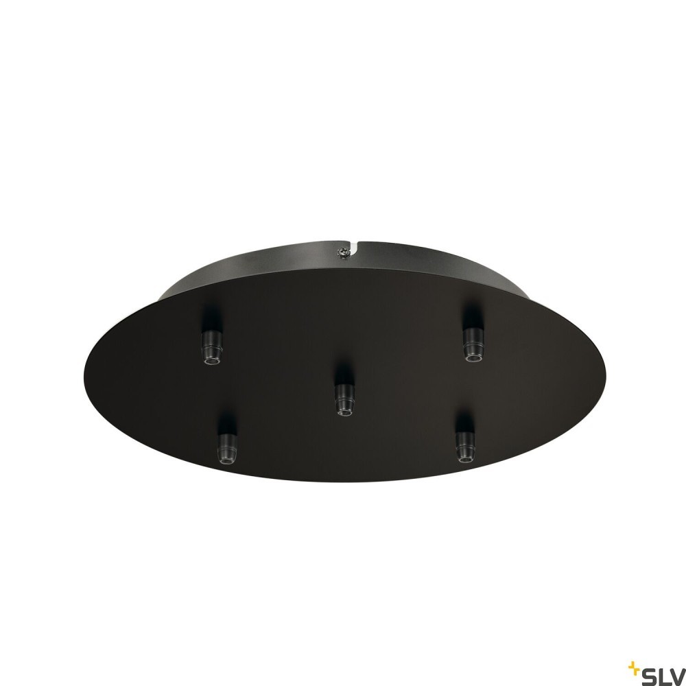 ROZETA SUFITOWA FITU, rozeta z 5 wyjściami, okrągła, czarna, z uchwytami odciążającymi kabla