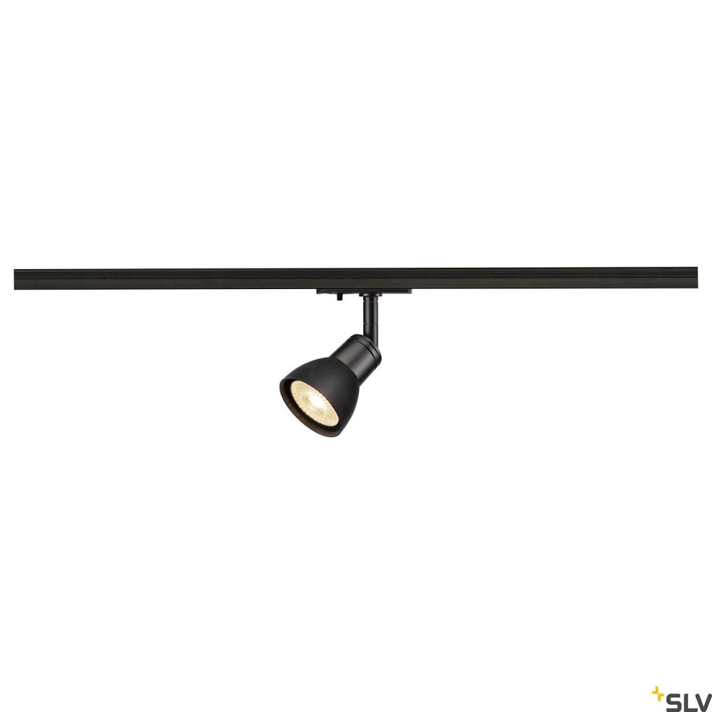 PURIA, spot do szyny wysokonapięciowej 1-fazowej, QPAR51, czarny mat, czarny plastik satynowany, maks. 50 W, z adapterem 1-fazowym