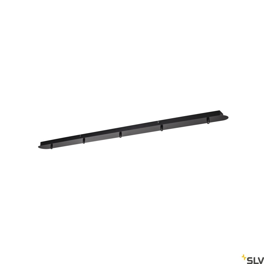 Podłużna rozeta sufitowa FITU jest dostępna w różnych wersjach kolorystycznych z pięcioma wyjściami. Można ją połączyć w dowolnej konfiguracji z lampami wiszącymi FITU E27. Odpowiedni uchwyt odciążający kabla znajduje się w zakresie dostawy.