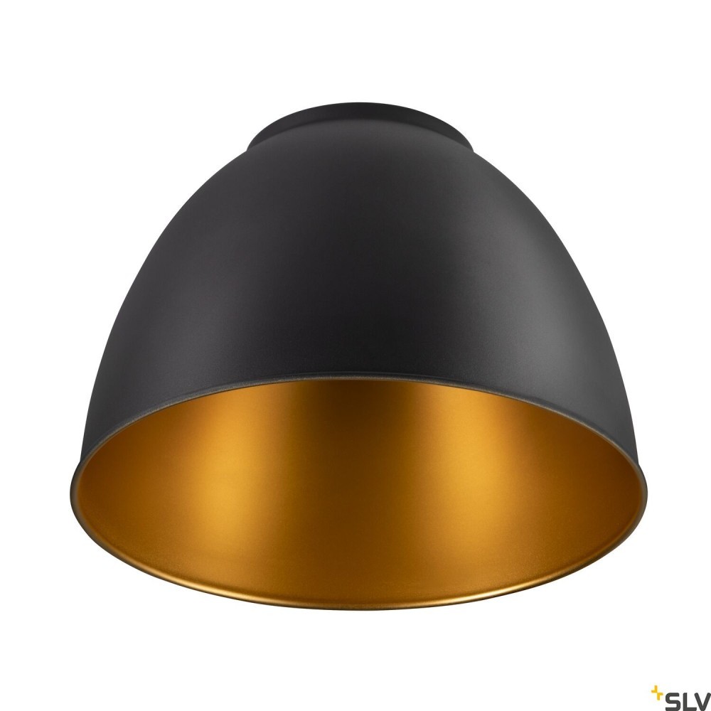 Klosz PARA DOME jest dopełnieniem lampy wiszącej, która idealnie nadaje się do pomieszczeń technicznych, przemysłowych i komercyjnych. Aluminiowy odbłyśnik w kolorze czarnym i złotym zapewnia optymalne rozproszenie światła. Dzięki stopniowi ochrony IP 20 ta lampa stanowi dobrze chronione oświetlenie wewnętrzne.