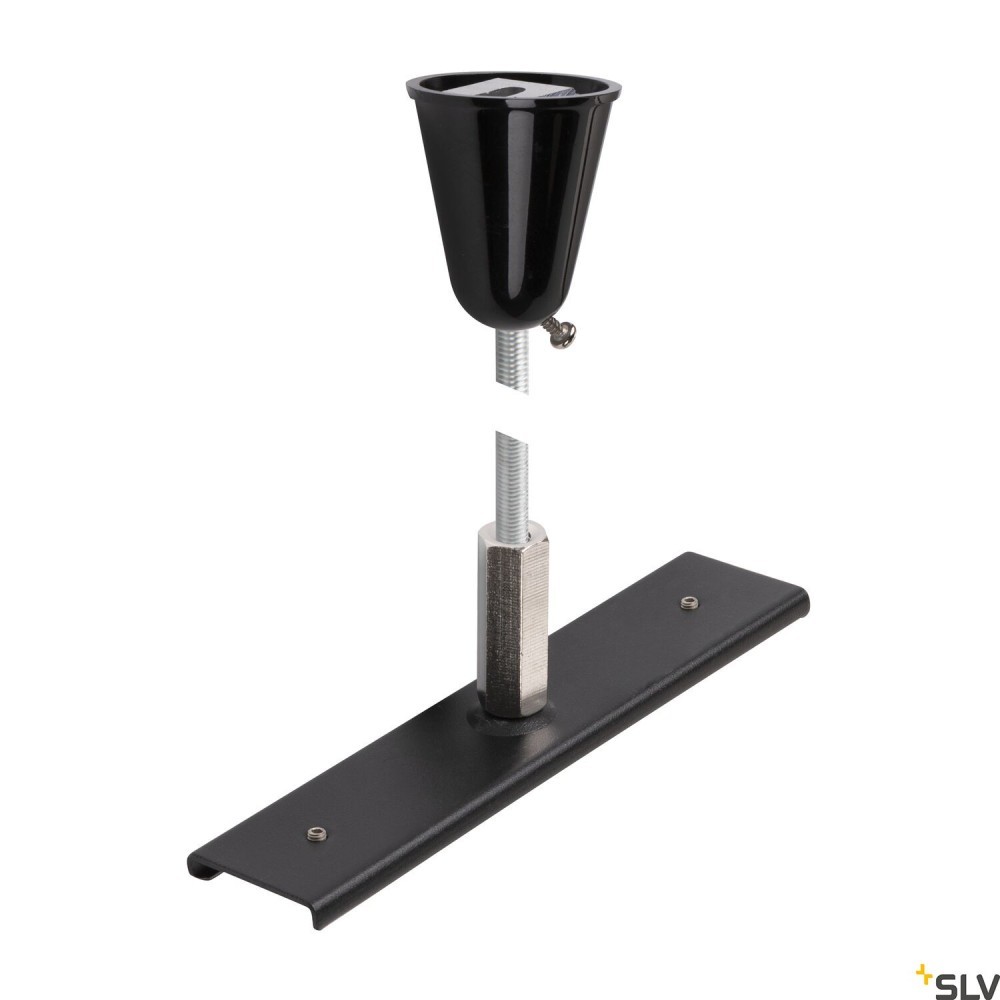 Płyta wzmacniająca szynę z zestawem do zawieszania służy jako stabilizator i wzmocnienie połączenia podczas montażu wielu szyn 48 V TRACK zainstalowanych na sztywnym zawieszeniu sufitowym o długości jednego metra.