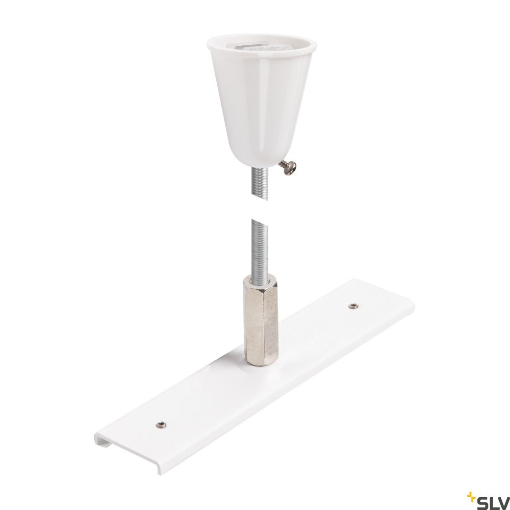 Płyta wzmacniająca szynę z zestawem do zawieszania służy jako stabilizator i wzmocnienie połączenia podczas montażu wielu szyn 48 V TRACK zainstalowanych na sztywnym zawieszeniu sufitowym o długości jednego metra.