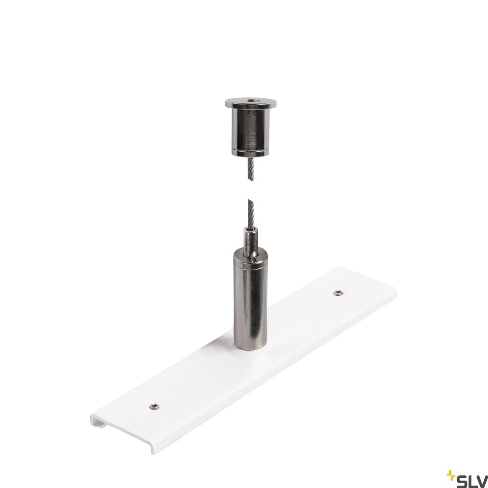 Płyta wzmacniająca szynę z zestawem do zawieszania, 48 V TRACK, lina stalowa 3 m, biała