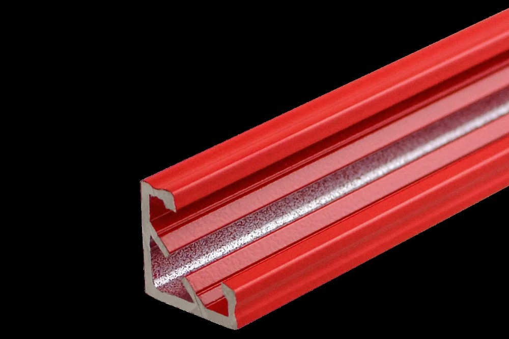 Profil narożny, gdzie powierzchnia świecąca jest pod kątem 45 stopni do płaszczyzny montażu. Doskonale sprawdza się w narożnikach dwóch powierzchni, jak i do dyskretnego oświetlenia bez widocznego źródła światła. Montowany w regałach sklepowych, witrynach, w domu najczęściej wykorzystywane w szafach oraz jako oświetlenie kuchenne. • Dostępne anodowane, oraz lakierowane proszkowo • Klosze PCV oraz PMMA • Wyprodukowane w Polsce