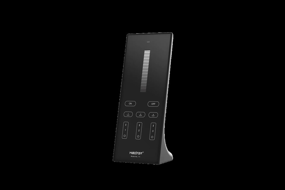 Pilot Y1 MiBoxer przeznaczony do ściemniania i zmiany natężenia światła w systemach MONO. Obsługuje do 3 stref, a każda strefa może mieć dowolną liczbę odbiorników. Dzięki prostemu i intuicyjnemu designowi obsługa jest wygodna i szybka. Zasilany 2 bateriami AAA.