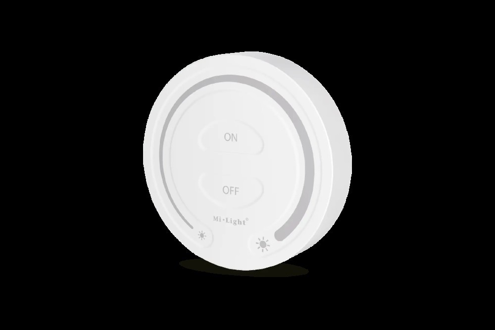 Pilot naścienny FUT087 Mi-Light pozwala na płynną regulację jasności światła białego. Komunikacja z produktami odbywa się bezprzewodowo. Urządzenie zasilane jest bateryjnie 2 x AAA, do instalacji natynkowej za pomocą dołączonej taśmy dwustronnej lub śrub.