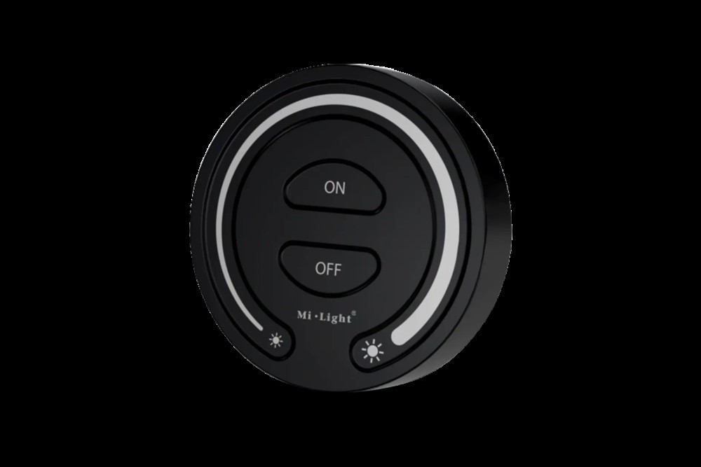 Pilot naścienny FUT087B Mi-Light pozwala na płynną regulację jasności światła białego. Komunikacja z produktami odbywa się bezprzewodowo. Urządzenie zasilane jest bateryjnie 2 x AAA, do instalacji natynkowej za pomocą dołączonej taśmy dwustronnej lub śrub.