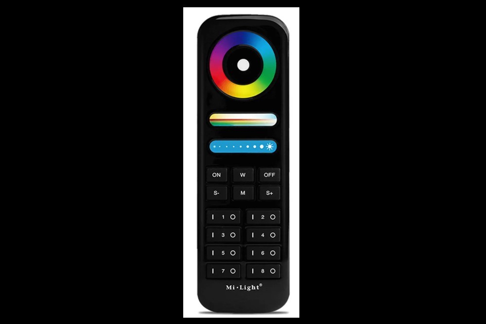 Zaawansowany pilot przeznaczony dla źródeł światła MONO/CCT/RGB/RGBW/RGB+CCT, umożliwia sterowanie ośmioma strefami, w każdej strefie może współpracować z wieloma sterownikami na raz. Możliwość płynnej regulacji jasności, koloru światła, oraz temperatury barwowej światła białego.