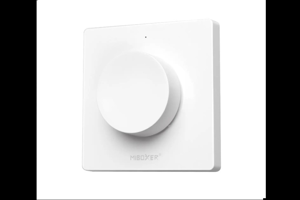 Panel naścienny do regulacji natężenia światła LED z pokrętłem. Możliwosć płynnej regulacji jasności oraz temperatury barwowej światła białego. Zasilanie 1xCR2032.