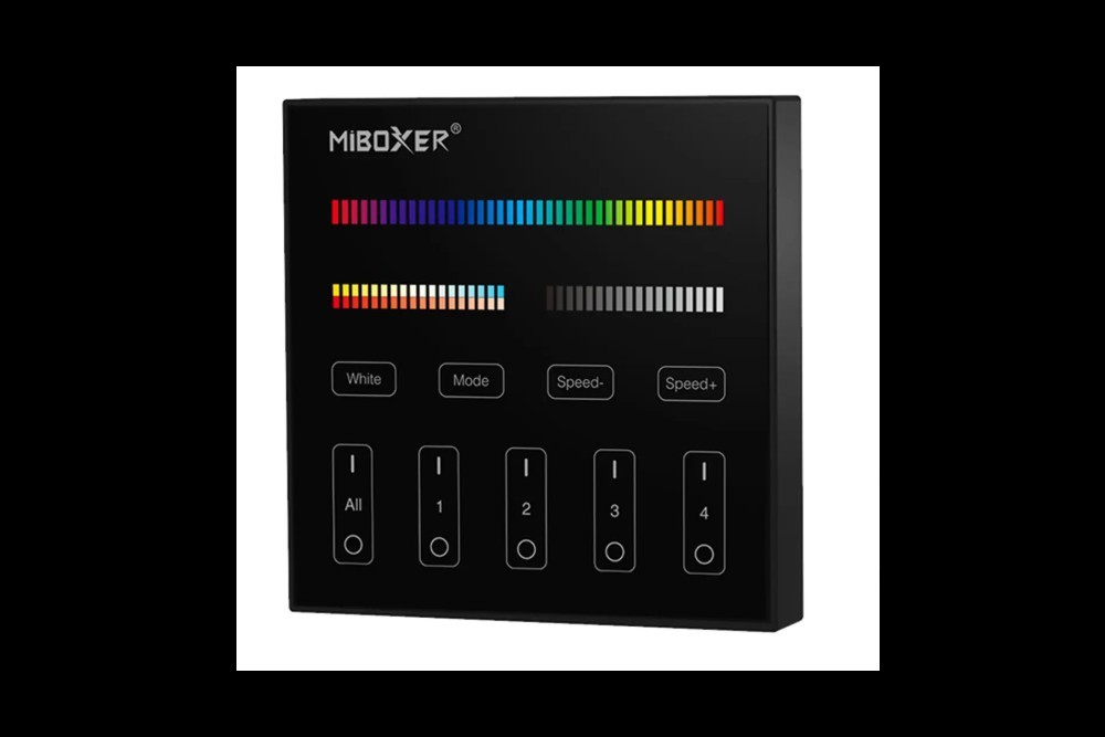 Panel naścienny do regulacji jasności, koloru światła, oraz temperatury barwowej światła białego. Możliwość sterowania czteroma strefami. Zasilanie 2xAAA.