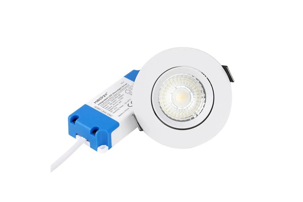 Oprawa LED Downlight 90mm 6W CCT Zigbee MiLight/MiBoxer, to oprawa z możliwością zmiany temperatury barwowej do zabudowy w suficie podwieszanym. Posiada wąski kąt rozsyłu światła 30°, który umożliwia zmianę kierunku. Możliwość płynnej regulacji jasności, oraz temperatury barwowej światła białego w zakresie 2700-6500K. Sterowanie za pomocą pilota lub aplikacji na smartfona (wymagany mostek ZB-BOX1, lub ZB-BOX2).