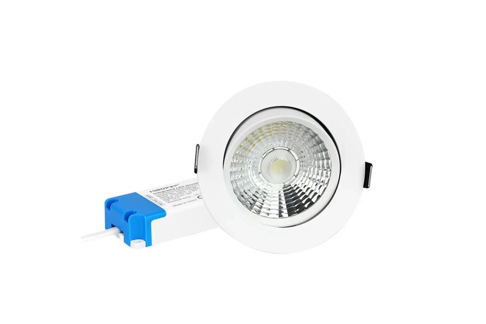 Oprawa LED Downlight 90mm 12W CCT Zigbee MiLight/MiBoxer, to oprawa z możliwością zmiany temperatury barwowej do zabudowy w suficie podwieszanym. Posiada wąski kąt rozsyłu światła 30°, który umożliwia zmianę kierunku. Możliwość płynnej regulacji jasności, oraz temperatury barwowej światła białego w zakresie 2700-6500K. Sterowanie za pomocą pilota lub aplikacji na smartfona (wymagany mostek ZB-BOX).