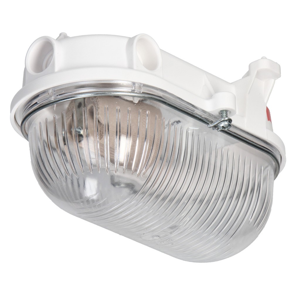 OVAL-7063NB, oprawa oświetleniowa, 75W, E27, IP54, IK10, klosz poliwęglan przeźroczysty, podstawa bakelitowa, siatka metalowa obręcz, biała