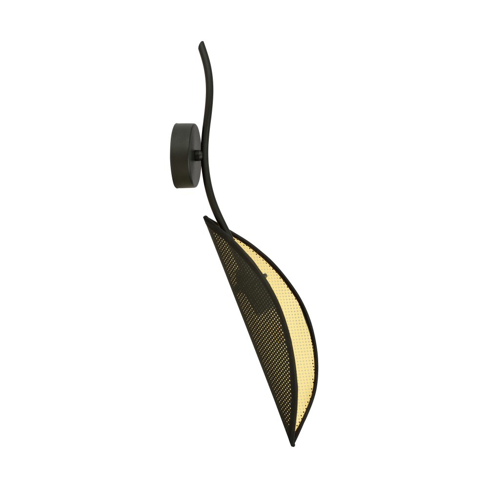 PETALO to kinkiet ścienny przystosowany na 1 żarówkę z gwintem E14, o maksymalnej mocy 40W (brak w zestawie). Zastosowanie wymiennego źródła światła pozwala każdemu użytkownikowi na indywidualny dobór rodzaju żarówki i na dostosowanie jej kształtu oraz barwy światła do własnych preferencji. Swoim wyglądem lampa do złudzenia przypomina płatek lub liść, dlatego będzie mocnym akcentem dekoratorskim w każdym pomieszczeniu. Taka lampa zada wyjątkowego szyku, wniesie do wystroju oryginalność i elegancję. Produkt wykonany jest ze strukturyzowanego tworzywa sztucznego. Zewnętrzna część klosza jest czarna, a wnętrze jest złote, przez co blask lampy jest jeszcze bardziej rozproszony. Korpus lampy wykonany jest ze stali malowanej proszkowo na kolor czarny. Produkt nadaje się do montażu natynkowego w pomieszczeniach suchych. Wyprodukowano w Polsce.