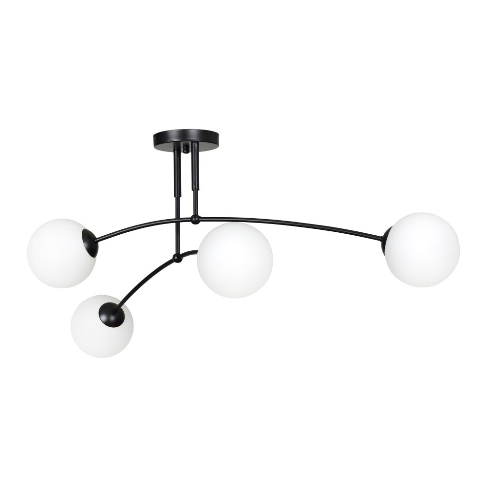 MONZA to lampa wisząca przystosowana na 4 żarówki z gwintem E14, o maksymalnej mocy 40W każda (brak w zestawie). Zastosowanie wymiennego źródła światła pozwala każdemu użytkownikowi na indywidualny dobór rodzaju żarówki i na dostosowanie jej kształtu oraz barwy światła do własnych preferencji. Lampa ma prostą, minimalistyczną formę, która odpowiednia będzie do nowoczesnych wnętrz, również tych utrzymanych w bardzo popularnym stylu skandynawskim. Korpus lampy wykonany jest ze stali lakierowanej na kolor czarny, natomiast kuliste klosze zrobione są z mlecznego, białego szkła. Produkt nadaje się do montażu natynkowego w pomieszczeniach suchych. Wyprodukowano w Polsce.