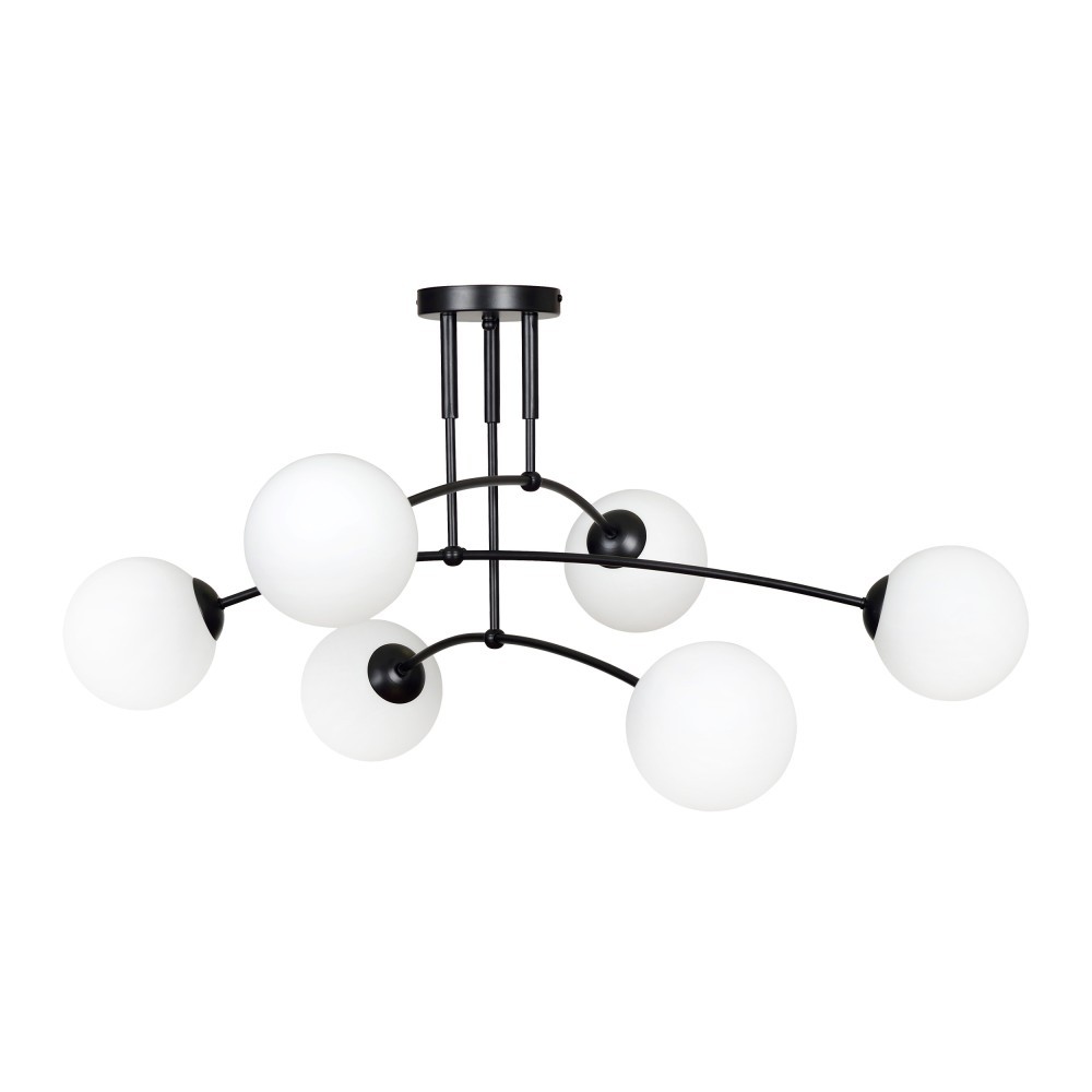 MONZA to lampa wisząca przystosowana na 6 żarówek z gwintem E14, o maksymalnej mocy 40W każda (brak w zestawie). Zastosowanie wymiennego źródła światła pozwala każdemu użytkownikowi na indywidualny dobór rodzaju żarówki i na dostosowanie jej kształtu oraz barwy światła do własnych preferencji. Lampa ma prostą, minimalistyczną formę, która odpowiednia będzie do nowoczesnych wnętrz, również tych utrzymanych w bardzo popularnym stylu skandynawskim. Korpus lampy wykonany jest ze stali lakierowanej na kolor czarny, natomiast kuliste klosze zrobione są z mlecznego, białego szkła. Produkt nadaje się do montażu natynkowego w pomieszczeniach suchych. Wyprodukowano w Polsce.