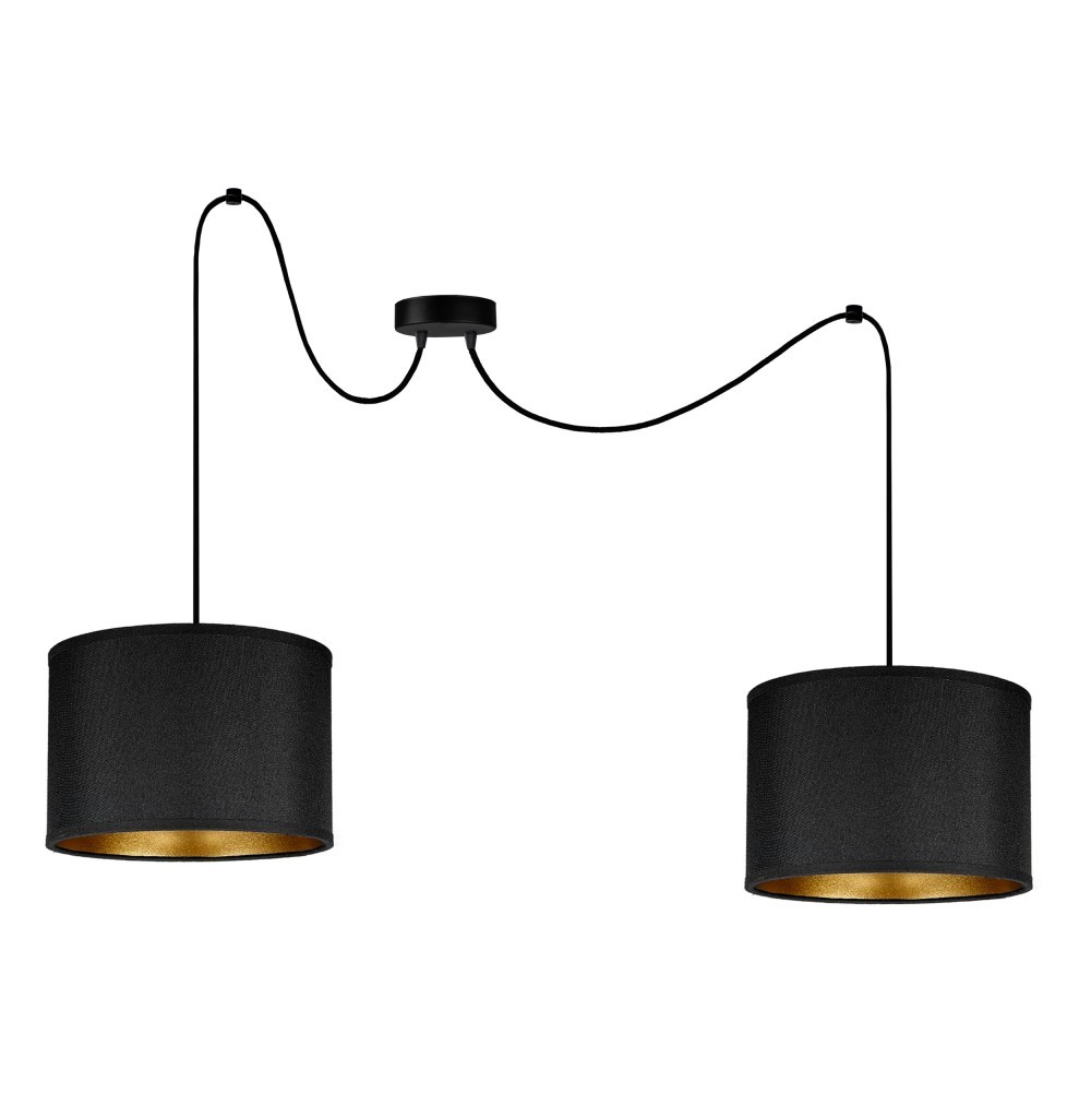KYLO to rodzina lamp powstała z myślą o kompleksowej aranżacji wymarzonych wnętrz. W serii znajdują się zarówno lampy wiszące, stojące jak i biurkowe. Wszystkie lampy przystosowane są do źródeł światła typu E27, o mocy 60W każde i utrzymane są w eleganckiej i prostej stylistyce, nawiązującej do klasycznych projektów wpasowujących się w różnego rodzaju aranżacje. Cylindryczna lampa w kolorach czerni i złota jest eleganckim i nowoczesnym dodatkiem do każdego pomieszczenia. Jej prosta forma składa się z matowej, czarnej ramy, którą uzupełniają złote akcenty kloszy. Złote wykończenie klosza odbija światło i dodaje lampie luksusowego wyglądu i przyciągają uwagę. Lampa KYLO 2P to model wiszący z dwoma miejscami na źródła światła. Klosze osadzone na praktycznej i łatwej w montażu okrągłej rozecie, zapewniają intensywne oświetlenie pomieszczenia. W zależności od wybranej żarówki, może emitować miękkie, przyjemne dla oka światło lub bardziej funkcjonalne, idealne do pracy. Lampa doskonale komponuje się z nowoczesnymi aranżacjami wnętrz, zwłaszcza z czarnymi i złotymi akcentami. Może być umiejscowiona w centralnym punkcie pomieszczenia lub w dowolnie wybranym miejscu, aby skupić uwagę na innych elementach dekoracyjnych. Wisząca czarna lampa to okazja na stworzenie eleganckiej i stylowej atmosfery w Twoim domu lub biurze.