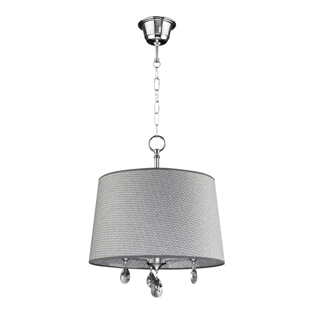 Seria lamp ACHAJA to kompletne oświetlenie, które łączy w sobie elegancję i funkcjonalność. Wyróżnia ją ciekawy design w postaci wiszących szklanych kamieni zwieńczających ramiona lampy, tworząc niezwykły element dekoracyjny, który nadaje lampom niepowtarzalność. Seria składa się z lamp wiszących, wyposażonych w trzy lub pięć gniazd oraz kinkietu ściennego. Każda lampa z tej kolekcji emanuje wyjątkowym stylem i doskonałą jakością wykonania, dzięki czemu są idealnym dodatkiem do każdego wnętrza. Kolekcja ACHAJA została wykonana z solidnego metalu, co gwarantuje ich trwałość. Ponadto każda z lamp wyposażona jest w piękny abażur, który nadaje oświetleniu elegancji. Dostępne w dwóch wariantach – mosiądz połączony z czarnym abażurem i czarnymi kamieniami oraz chrom połączony z szarym abażurem i bezbarwnymi kamieniami. Prezentowana lampa ACHAJA 3P, to lampa wisząca, wyposażona w trzy gniazda E27, które pozwalają na zastosowanie trzech żarówek o max. mocy 60W każda. Swoboda w wyborze żarówki umożliwia dopasowanie oświetlenia do własnych preferencji. Oprawa posiada duży abażur w kolorze szarym oraz metalowe wykończenie pokryte warstwą chromu z wiszącymi, bezbarwnymi kamieniami wykonanymi ze szkła. Lampa doskonale sprawdzi się nad stołem, biurkiem czy w salonie, tworząc jednocześnie element dekoracyjny całego pomieszczenia.