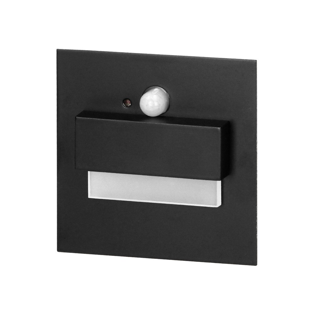 TRACO LED 1,5W, oprawa schodowa podtynkowa, 12VDC, 30lm, 6000K, czarny, czujnik ruchu i zmierzchu