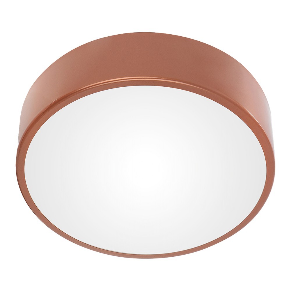 Plafon oświetleniowy OVO o maksymalnej mocy świecenia 3 x 24W, przystosowany jest na 3 wymienne źródła światła z gwintem E27 (brak w zestawie). Takie rozwiązanie pozwala każdemu użytkownikowi dobrać żarówki o kształcie i barwie światła odpowiadającej własnym potrzebom. Produkt składa się ze stalowej obręczy, malowanej proszkowo na kolor miedziany oraz klosza wykonanego z matowego szkła. Klosz ma klasyczny okrągły kształt, dlatego taka lampa jest odpowiednia do montażu zarówno na suficie, jak i na ścianie. Ciekawy efekt wizualny otrzymamy poprzez zestawienie kilku takich lamp blisko siebie. Zastosowanie uniwersalnego wzornictwa przekłada się na szerokie spektrum miejsc, w których produkt można użyć. Pasuje zarówno do pomieszczeń domowych, jak i biurowych. Sprawdzi się również w przestrzeniach wspólnych, takich jak korytarze i klatki schodowe. Produkt jest odpowiedni do zastosowania w pomieszczeniach suchych (IP20). Wymienne źródła światła czynią z tej oprawy produkt na lata, który nie stanie się bezużyteczny przy pierwszej awarii. Średnica plafonu wynosi 40cm.
