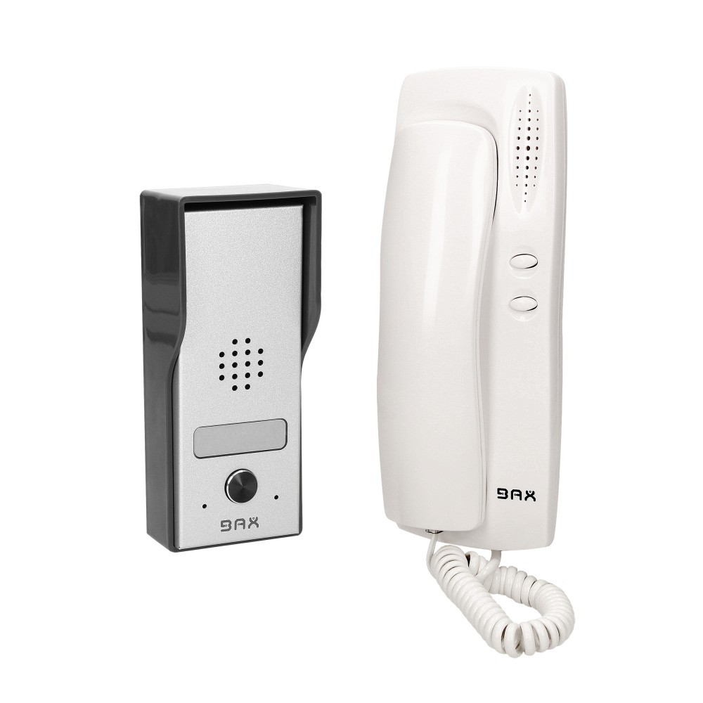 Zestaw domofonowy, jednorodzinny, montaż natynkowy, daszek ochronny w zestawie, podświetlane miejsce na nazwisko, podświetlany przycisk zwolnienia elektrozaczepu. Elektrozaczep nie wymaga dodatkowego zasilania.