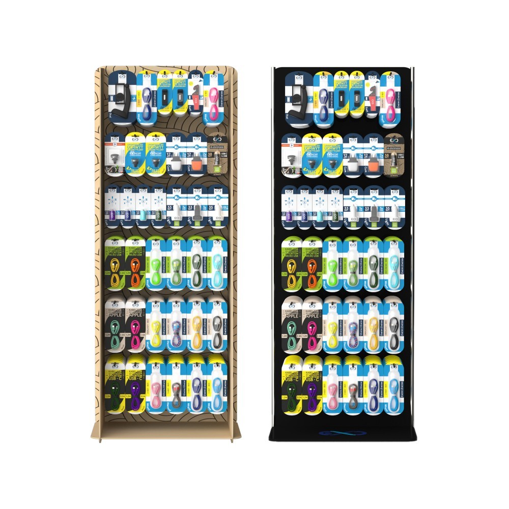 Ekspozytor EXC Mobile - 37 pozycji, 228 sztuk produktów. Zawiera: uchwyt samochodowy dual (3szt.), kabel USB-C - USB-C Whippy (5szt.), uniwersalny uchwyt samodowy AIR (12szt.), stojak na telefon/tablet (15 szt.), kabel USB-C - lightning WHIPPY (5szt.), uchwyt samochodowy HOLD (4szt.), uchwyt samochodowy BASIC (10szt.), ładowarka sieciowa CUTE (12szt.), ładowarka samochodowa ULTIMATE (5szt.), ładowarka samochodowa CUTE (28szt.), ładowarka samochodowa LIGHT,3xUSB (10szt.), ładowarka samochodowa LIGHT (5szt.), kabel USB-micro USB BAID (16szt.), Kabel USB-micro USB WHIPPY (6szt.), kabel USB- micro USB DIAMOND (6szt.), kabel USB-micro USB WHIPPY 2M (10szt.) kabel USB-lightning BRAID (16szt.), kabel USB-lightning WHIPPY (6szt.), kabel USB-lightning DIAMOND (6szt.), kabel USB-lightning WHIPPY 2M (10szt.), kabel USB- USB-C BRAID (16szt.), kabel USB- USB-C WHIPPY (6szt.), kabel USB- USB-C DIAMOND (6szt.), kabel USB- USB-C WHIPPY 2M (10szt.). Kolory produktów wysyłane są losowo.