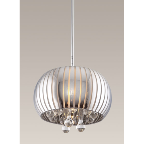 Lustrzana obudowa zewnętrzna ze szklanymi kropelkami wewnątrz na pewno jest eleganckim stylem lampy, który spodoba się niejednemu.