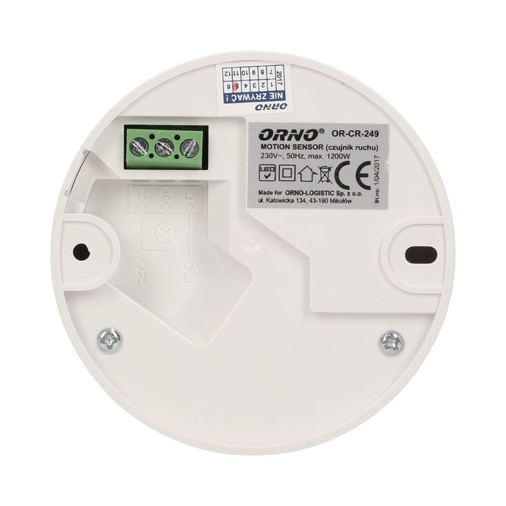 Czujnik ruchu PIR mini 360° IP20 1200W biały